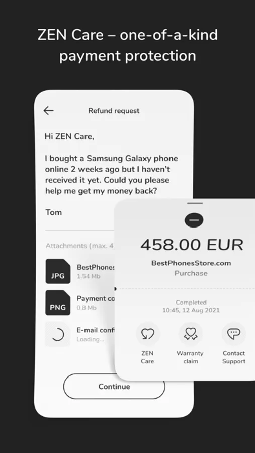 Unlock instant access to your virtual ZEN Mastercard® in just a few seconds. Grab your physical card in just a few days! With real-time transaction notifications, your finances are always at your fingertips. ZEN Care - shopping protection, secures all transactions made with the ZEN Mastercard®.