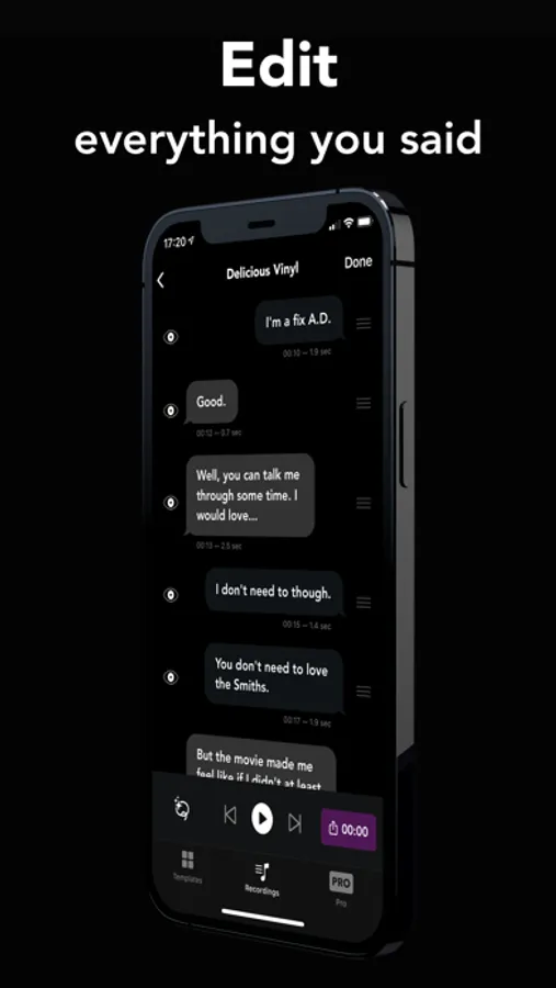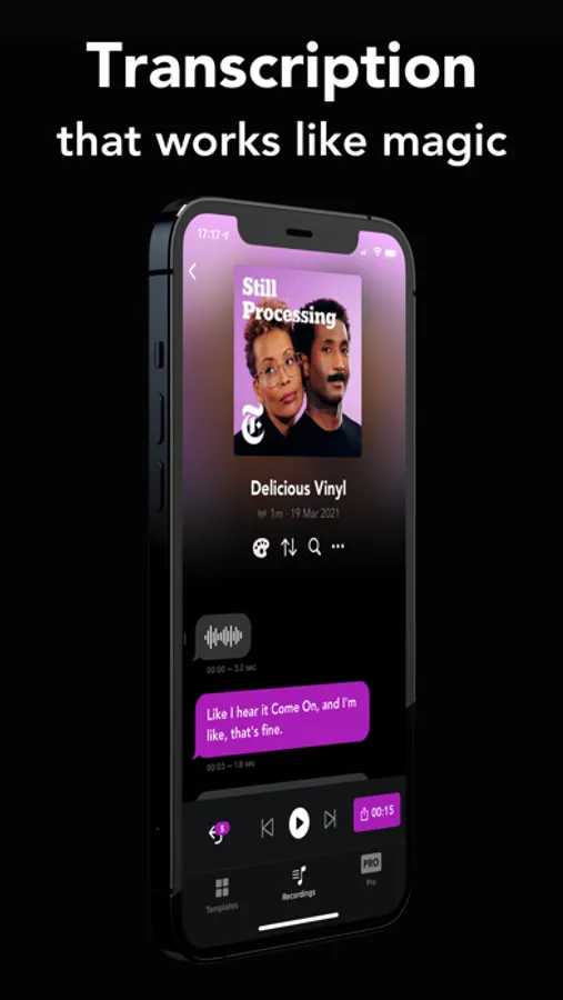 Now you can edit your audios and videos like a real doc with state of the art transcription, conversation bubbles, instant word search, smart selection, drag and drop reordering and custom snippet backgrounds.