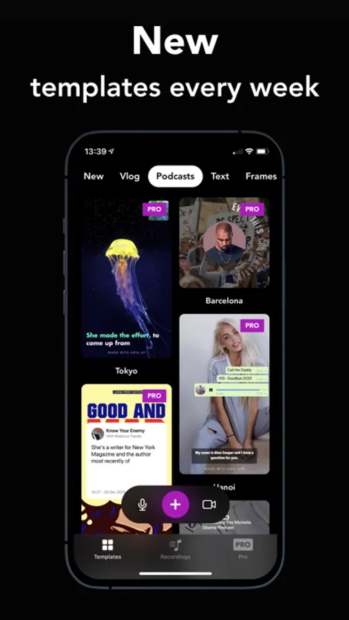 Our motion designers are creating stunning captioning templates that will match your voice perfectly, exclusively available on Aria.