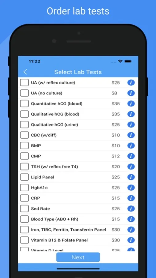 - Order lab tests that will be fulfilled at your local lab testing facility