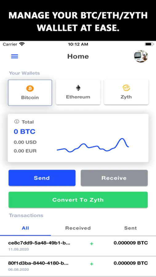 ZYTH WALLET! STORE INDIVIDUAL USER's CRYPTO IN ONE PLACE. ZYTH Wallet offers a simple interface to manage crypto transactions (BNB, BTC and ZYTH).