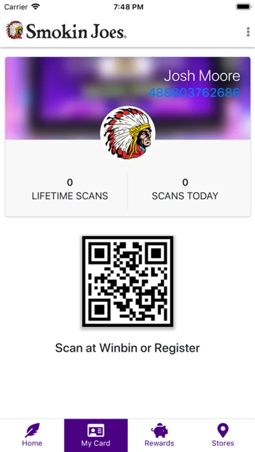 If you are already a Smokin Joes WinBin Loyalty Card holder, all you need to do is log in with your phone number! If you are not, you will be prompted to register with some basic contact info and a card will be generated for you.