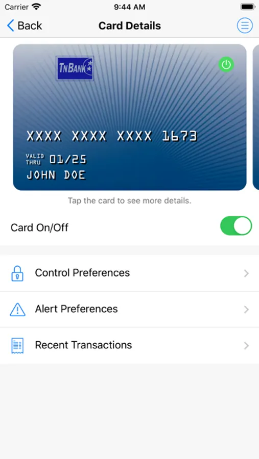 When the card is ON, transactions are allowed per settings. When card is OFF, purchases or withdrawals are not allowed. Utilize this option for lost or stolen cards.