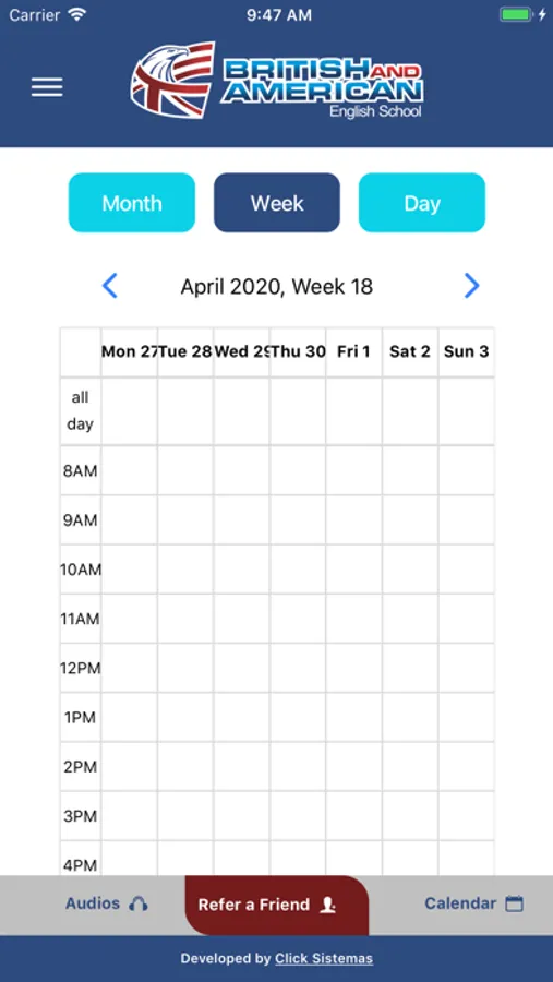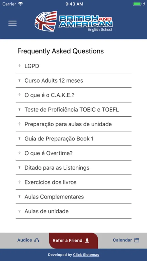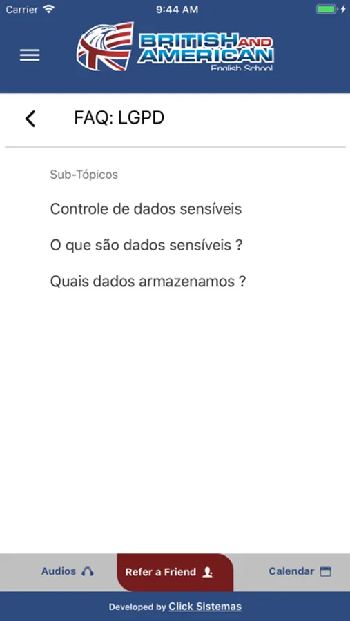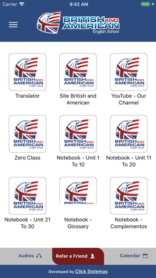 O British and American App tem por objetivo auxiliar nossos alunos no aprendizado de idioma inglês, tornando as aulas e práticas mais ágeis. O app disponibiliza áudios dos Books, agenda de aulas e eventos educacionais e emite alertas os alunos sobre as aulas e eventos. A finalidade deste APP é suprir as necessidades dos nossos alunos e não alunos no ambiente mobile, o APP British and American, ajuda-os a estudarem personalizadamente, uma vez logados na plataforma, conseguem ouvir os áudios dos Books e interagir diretamente com a unidade em que estudam. Avaliando aulas por aula e controlando a agenda de aulas e eventos.