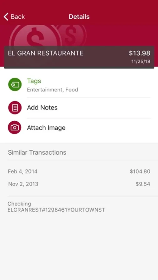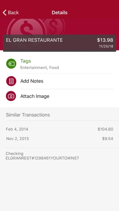 - Keep your transactions organized by allowing you to add tags, notes and photos of receipts and checks.