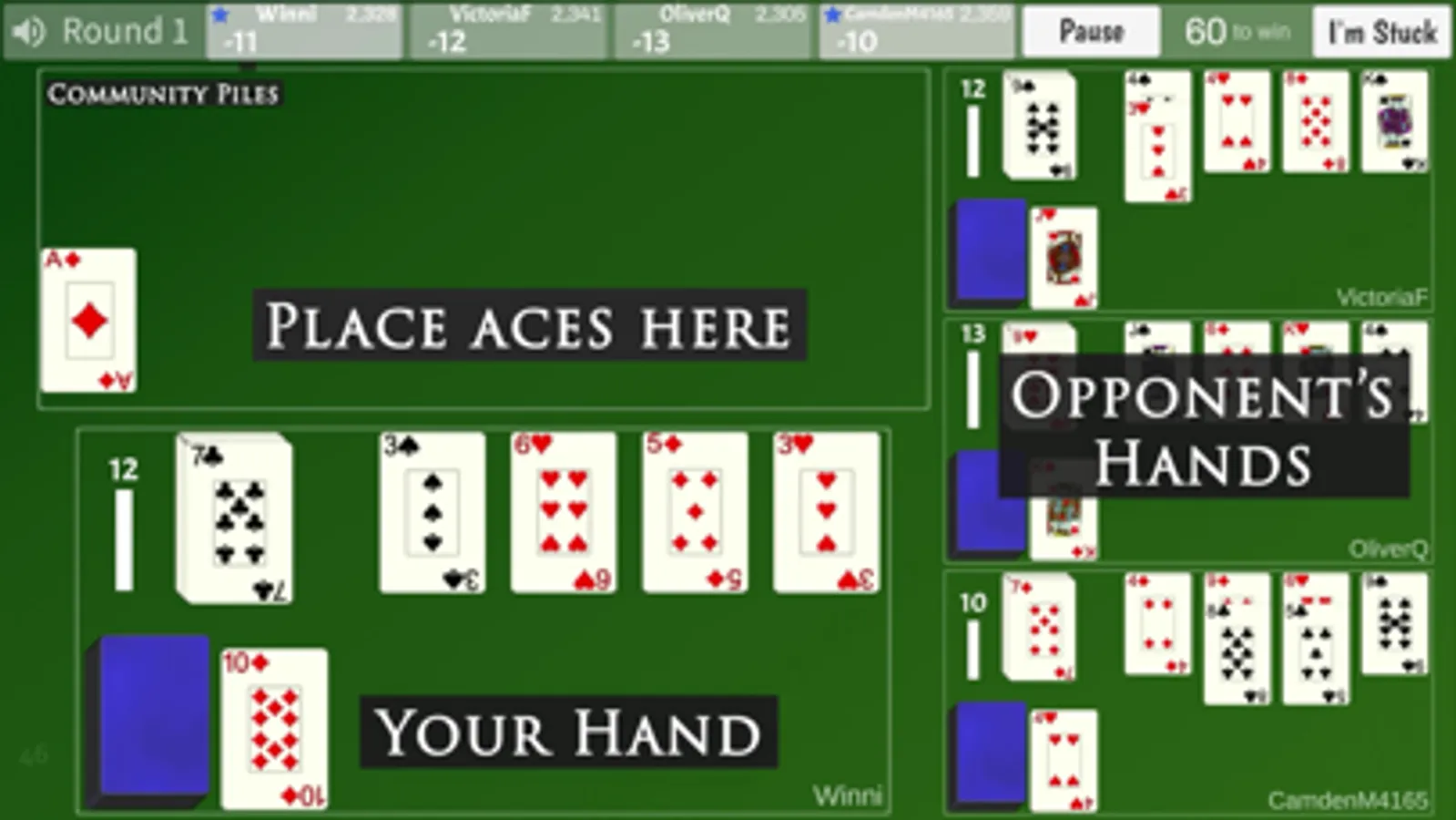 Solitaire Versus is a free, fast-paced multiplayer solitaire game popularly known as Nerts, Pounce, Peanuts, and Racing Demon. It plays like Canfield with two to four players all competing at once and sharing their ace piles.