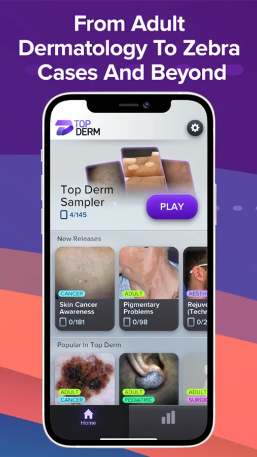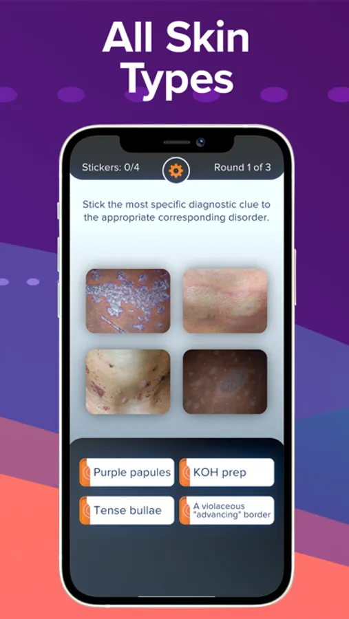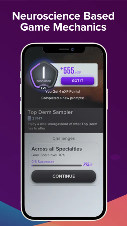 Top Derm is backed by neuroscience-based game mechanics that help you acquire and retain knowledge. It’s also a ton of fun and ready to go on your phone at any time. So whether you’re between patients, on a lunch break, or just sitting down to relax, Top Derm is waiting for you.