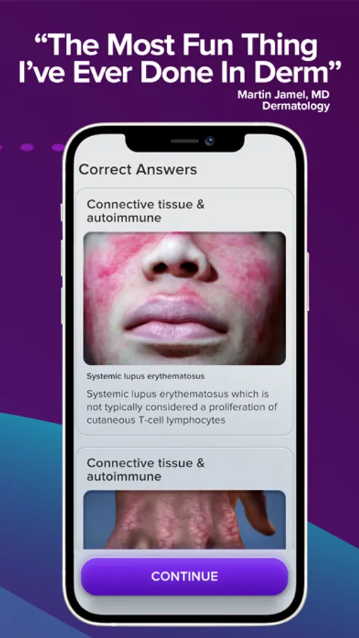 Top Derm is made by derms for derms. We worked with over 140 derm experts to create a medically accurate, fun, and challenging experience, unlike any other medical resource you’ve ever seen. Top Derm is a first-of-its-kind mobile game made by dermatology experts for dermatologists. Covering a wide variety of dermatology topics, Top Derm is packed with incredible, medically accurate, computer-generated derm imagery, in quick-burst challenges pulled from evidence-based research. Built on neuroscience-based game mechanics, Top Derm is a unique medical resource that also happens to be a ton of fun.