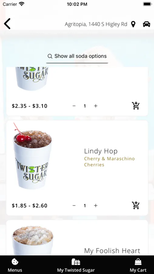 Mobile ordering just got easier. With the Twisted Sugar app, you can now mobile order ahead and skip the line. Use the app to mobile order, view previous orders and favorites, and much more.