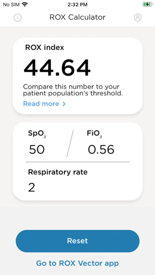 F&P ROX Calculator is a simple tool that allows you to calculate a patient's ROX index. The ROX index for a patient is calculated by dividing the SpO2 / FiO2 ration by respiratory rate, thus is easily measured and repeated at the bedside. The index can be used together with clinical judgement to assess whether mechanical ventilation may or may not be a required after initiation of NHF therapy. The index has been validated for patients with Acute Hypoxemic Respiratory Failure due to pneumonia (a link to this study in included from within the app).