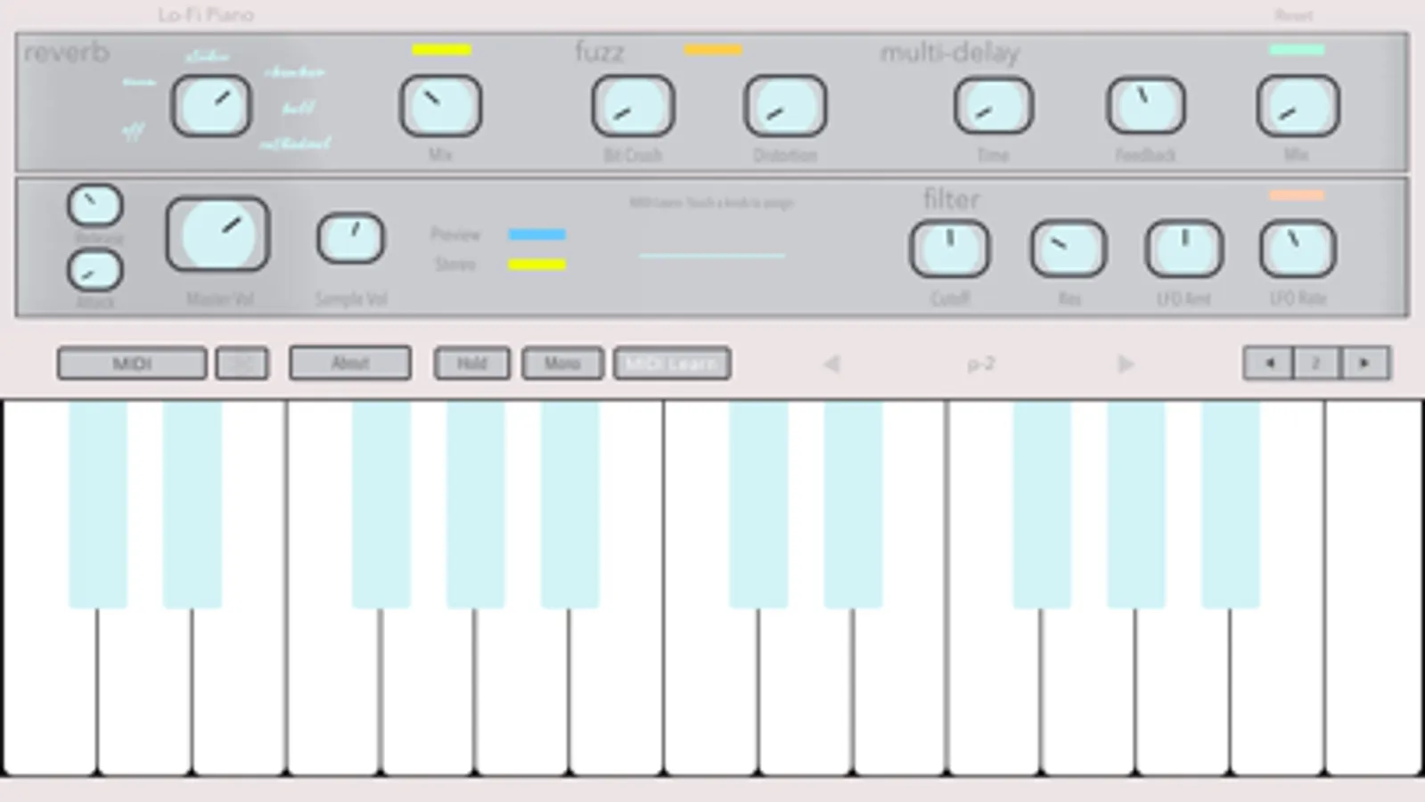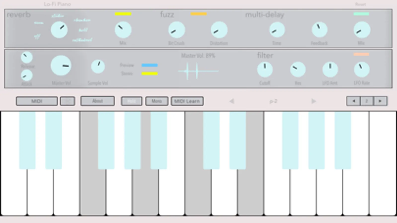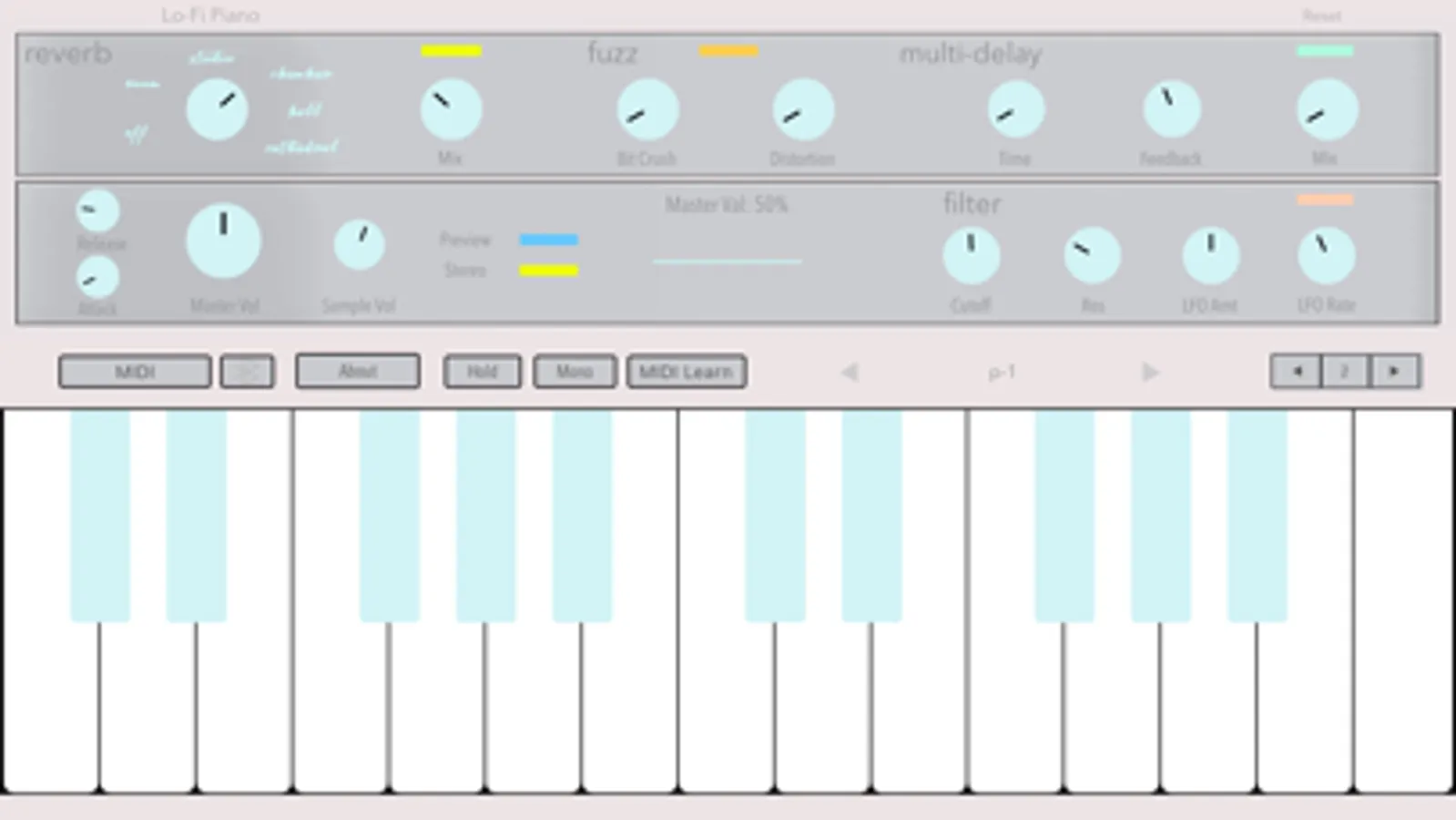 - Filter (Cutoff, Res, LFO Amt/Rate control)