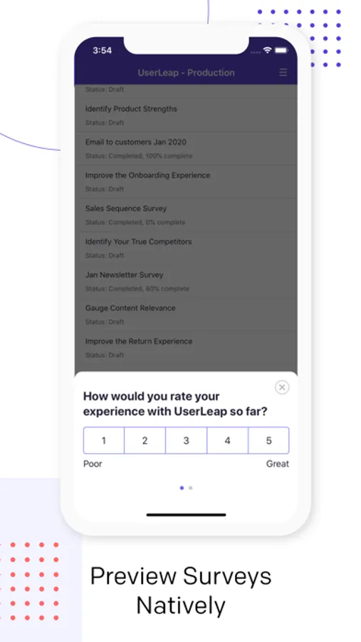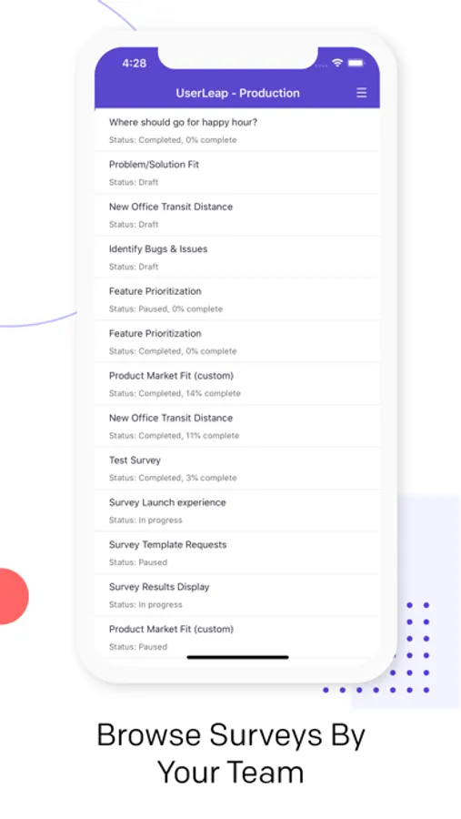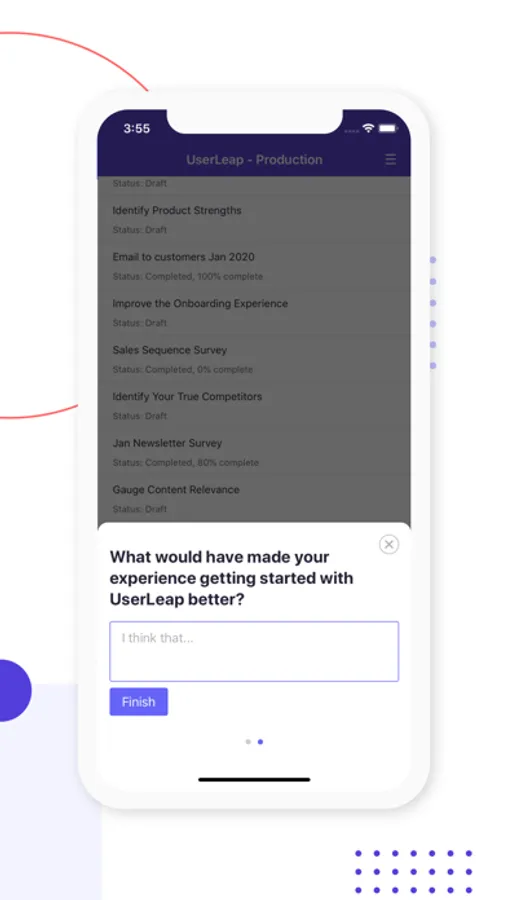 The app makes it possible for Sprig customers to preview surveys exactly as they will appear to users in a mobile setting. Log in, select your workspace, and choose any survey to preview the user experience on mobile.