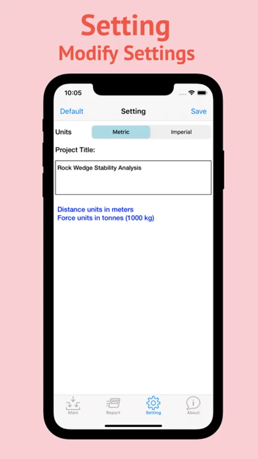 - The Settings Tab can be used to configure the main analysis parameters for your model, such as Units of Measurement, Project Title.