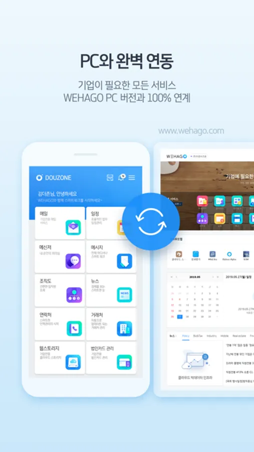 위하고 공공기관용(WEHAGO V) 플랫폼에서 제공하는 다양한 서비스를 언제 어디서나 모바일로 편리하게 사용할 수 있습니다.