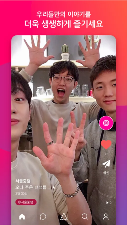 하나뿐인 오늘의 추억과 일상을 여러분의 그룹원들과 영상으로 나눠봐요.