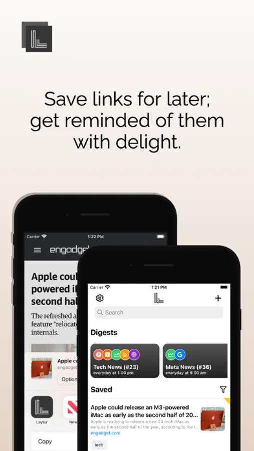 Laytur is a powerful app that helps you keep track of articles, blog posts, and other online content that you want to read later. With this app, you can easily save links from Safari or any app on your device, and create digests with reminders to ensure that you never forget to read them.