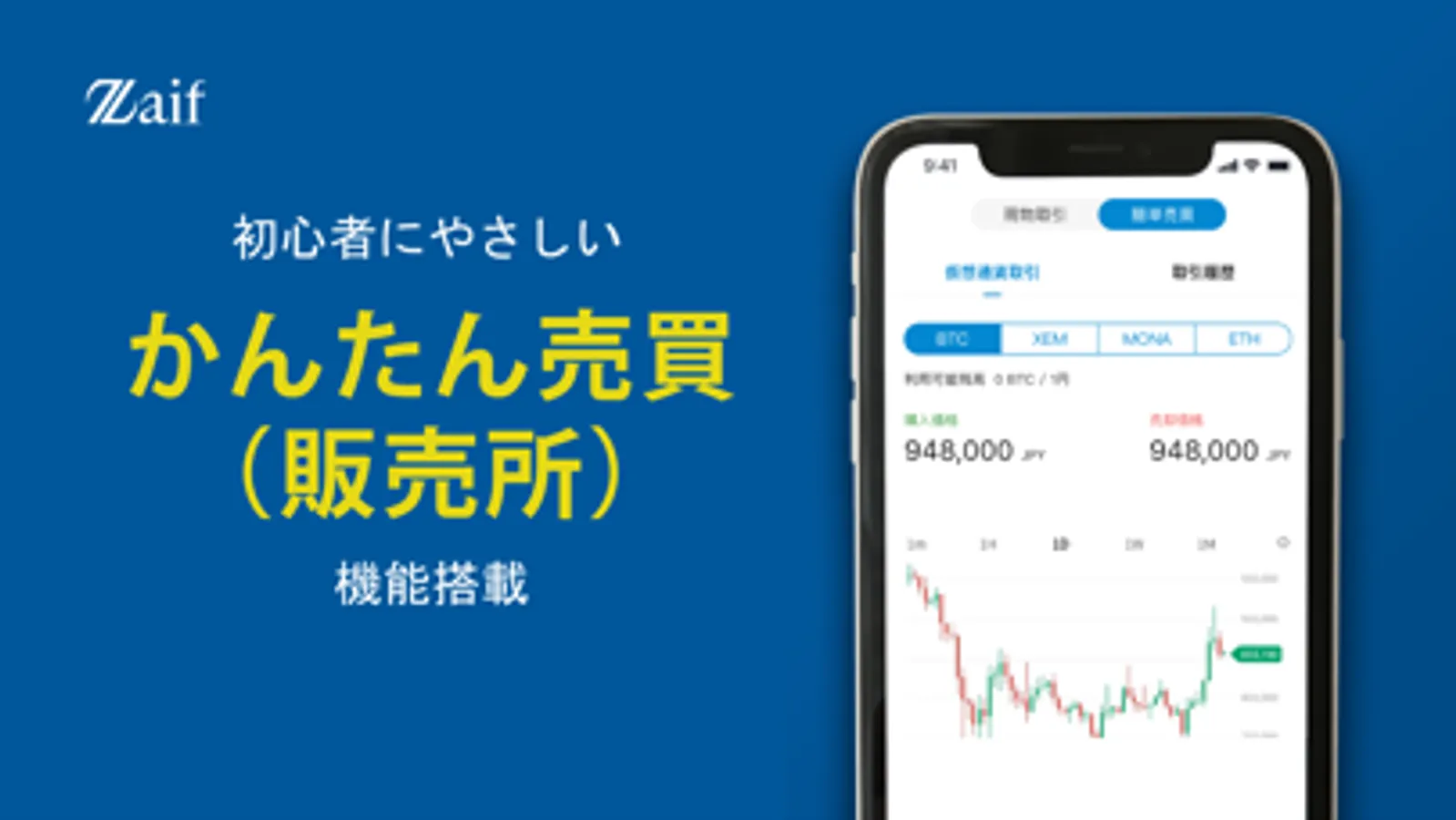 1)初心者にやさしい「かんたん売買(販売所)」を搭載。