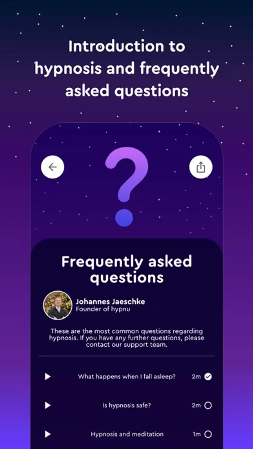 Note: Scientific sleep hypnosis has nothing to do with "show" hypnosis, magic, or esotericism. You will find more details on this in the app.