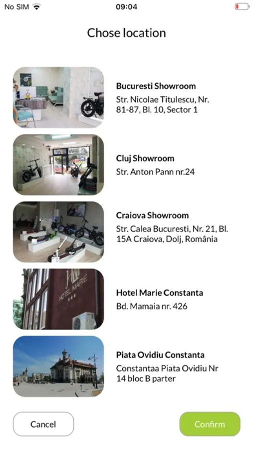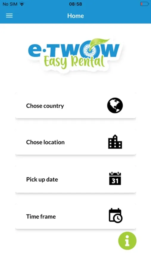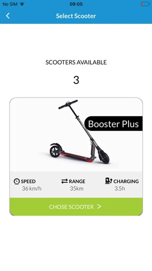 2. From the main screen, select the rental location, the date on which you want to rent the scooter and the desired rental period. View the available scooters and choose one of them.