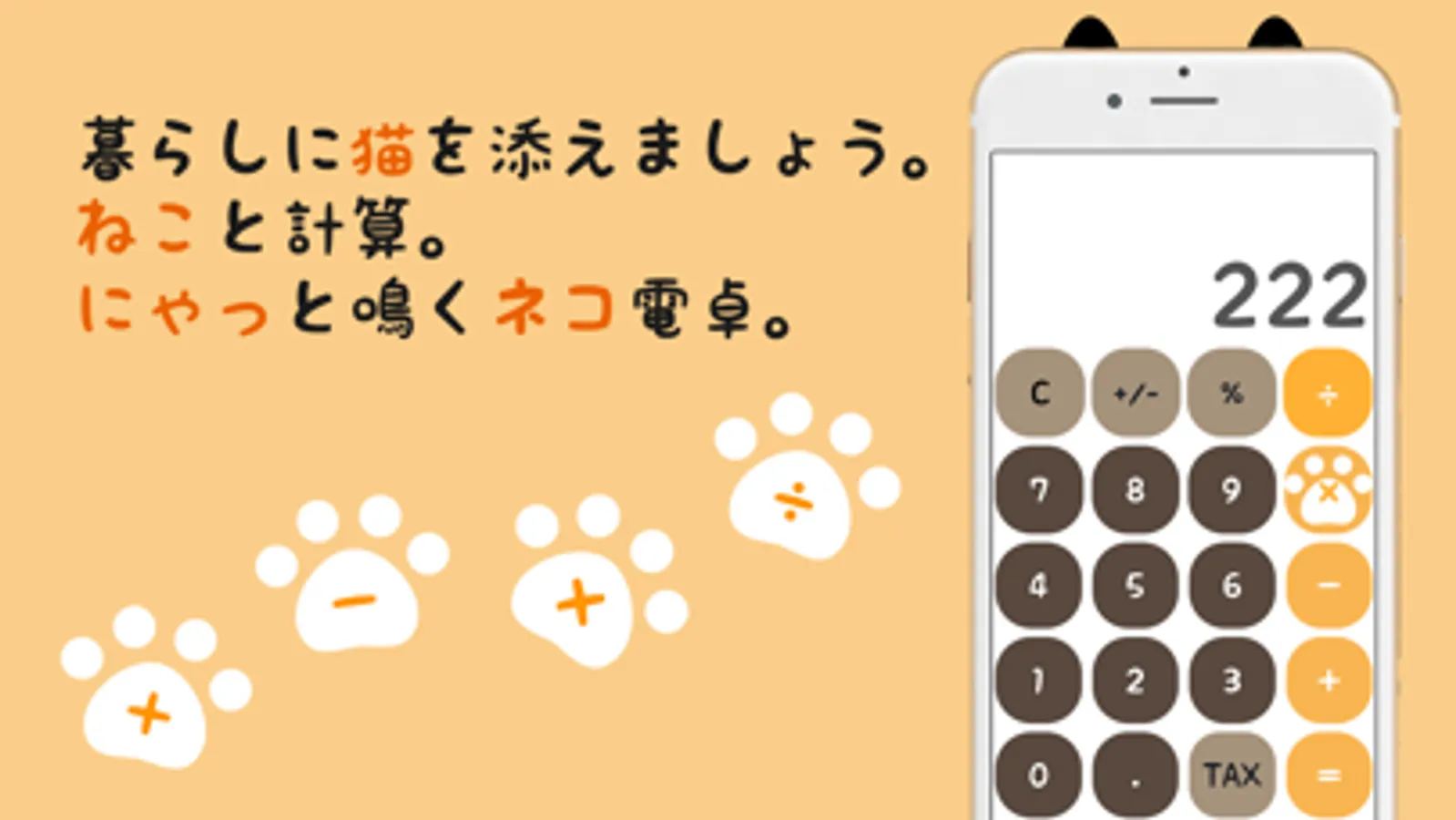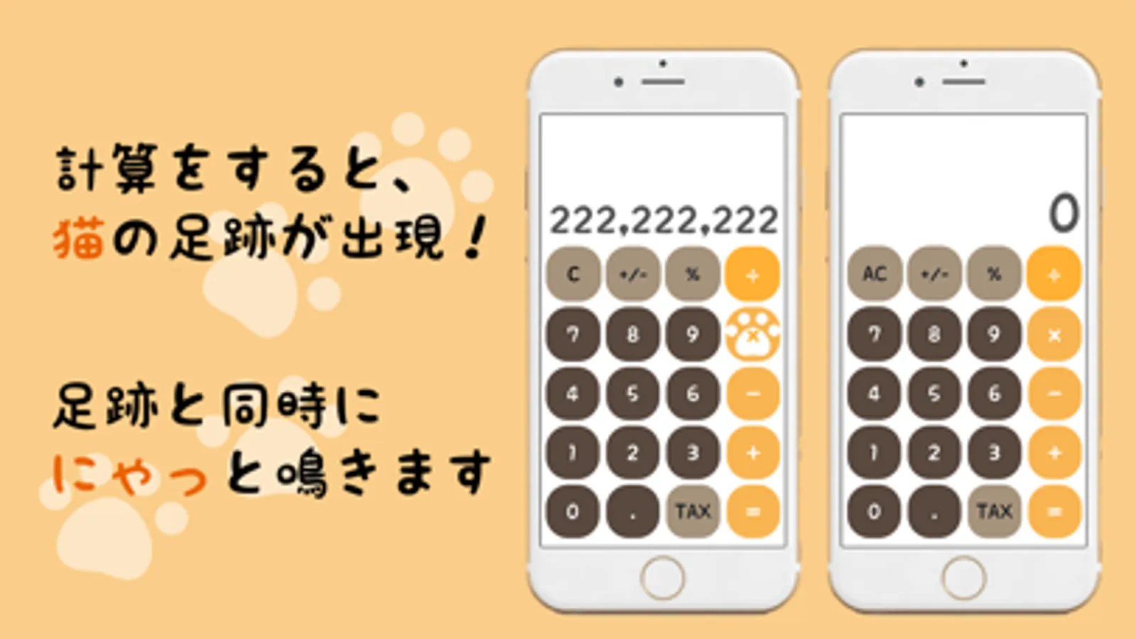 シンプルな電卓ですが、演算子(+-×÷)のボタンを押すと、かわいい猫の足跡が出現します。