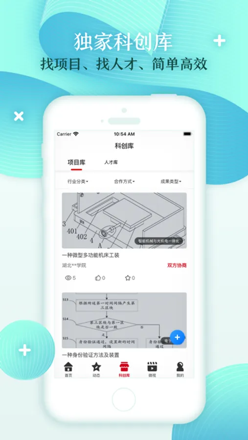 "科创中国项目,由中国科协牵头,目标为再造创新创业创造应用场景,促进国内外科技创新合作,开展重点区域技术交易服务试点,推动以省为统筹、以地市为中心、以县区为重点的科技经济联合体。科创中国APP包含以下版块: