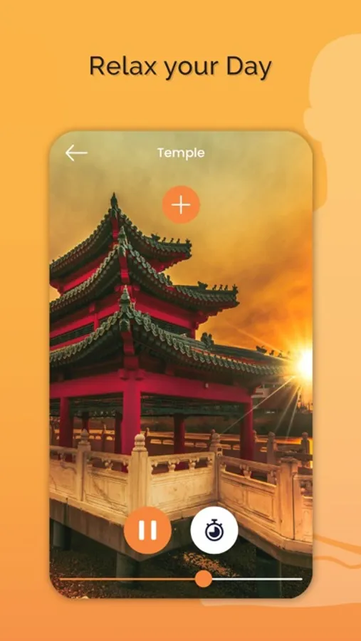 Along with the music there are background relaxation scenes which will serve better atmosphere ranging from Water, Mountains, Tress, Birds, Temple.