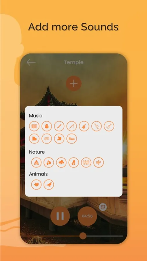 Meditation music supports facility to Add New Sound to already playing music in order to mix and create sounds so you don't need to browse anymore.