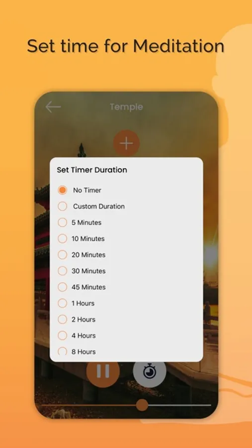 Meditation music App also supports timer feature to allow easy time setup to play music & lets you deeply focused in your meditation journey.