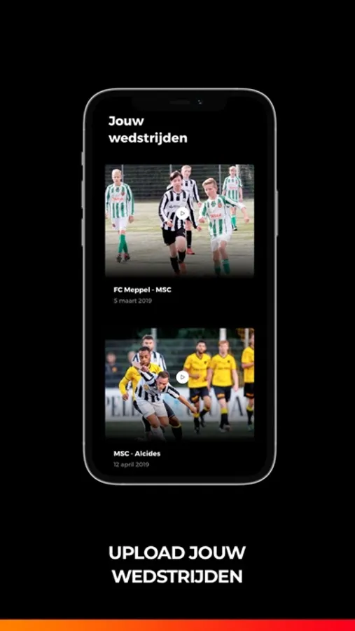 Laat jouw hele wedstrijd filmen zoals de wedstrijden op tv. Film de wedstrijd vanaf de middenlijn en volg altijd de bal. In de app upload je de complete wedstrijd.