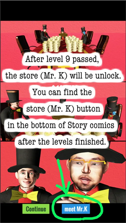 You can find the store (Mr. K) button in the bottom of Story comics to enter the store after the levels finished.