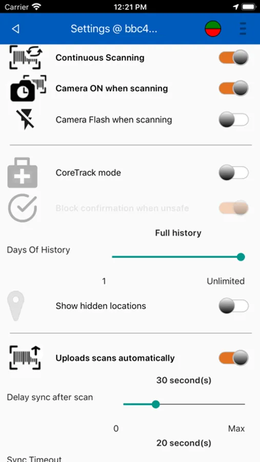 - Select whether to display a full scanning history or display only the last few days