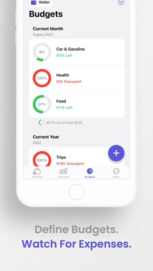 Define budgets to control expenses over day, week, month, year or over a specific date range.