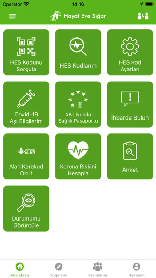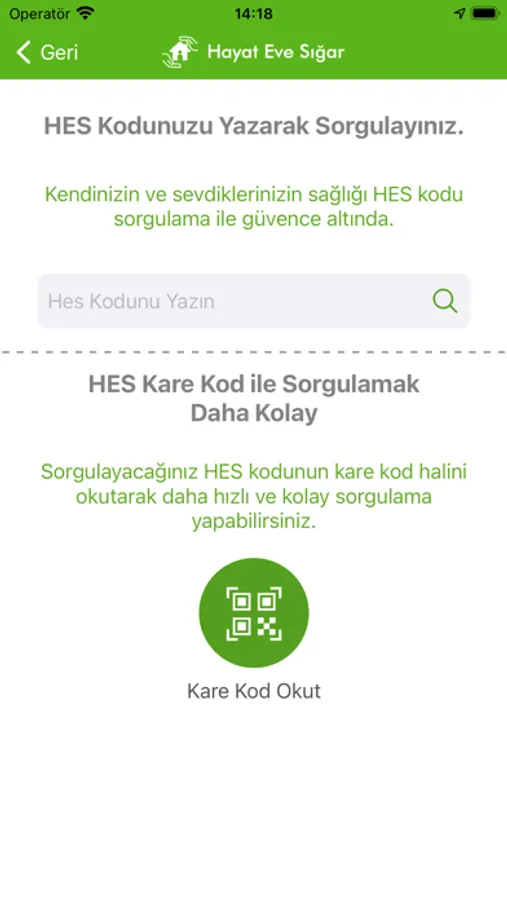 T.C. Sağlık Bakanlığı tarafından vatandaşlara sunulan Hayat Eve Sığar uygulaması ile telefon numaranız ile doğrulama yaparak adım adım size sorulan soruları cevaplayıp, koronavirüs hastalığı anlamında vermiş olduğunuz şikayetlerinize göre değerlendirilerek nasıl davranmanız gerektiğine göre yönlendirme alabilirsiniz. Vermiş olduğunuz cevaplara göre yönlendirmeler sadece öneri niteliği taşımaktadır ve nihai bir sonuç/kesinlik içermemektedir, tavsiye niteliğindedir.