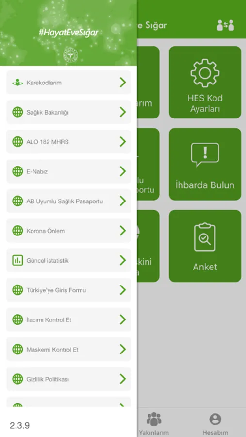 Hayat Eve Sığar Mobil Uygulaması, T.C. Sağlık Bakanlığı tarafından vatandaşlarımızı Yeni Koronavirüsü (Covid-19) konusunda bilgilendirmek, yönlendirmek ve yaşanabilecek salgın hastalık ile ilgili riskleri en az seviyeye indirmek ve yayılmasını önlemek amacıyla geliştirilen mobil uygulamadır.