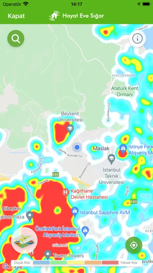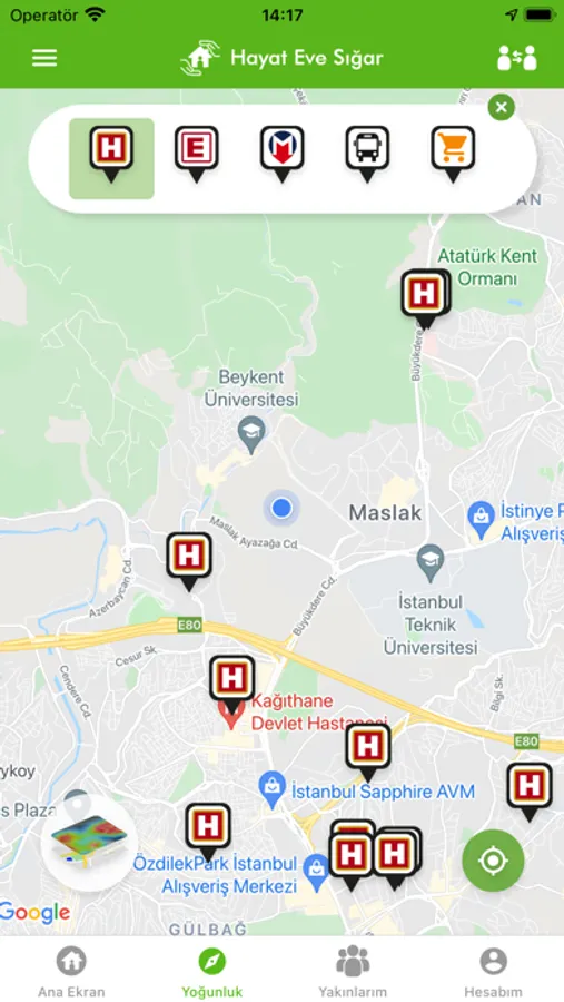 Aynı zamanda harita üzerinde hastane, eczane, market zincirleri, metro ve duraklar gibi temel ihtiyaç noktalarına kolayca ulaşabilir, evde izolasyon, enfekte kişiler ve riskli bölgelerin yoğunluğunu görebilirsiniz.