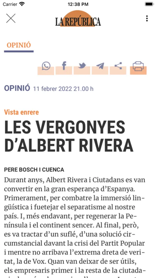 El setmanari La República arriba als quioscos el 28 d’abril de 2018 amb un número zero i començarà a distribuir-se amb periodicitat setmanal a partir del 26 de maig, els dissabtes al quiosc en solitari i els diumenges amb El Punt Avui.