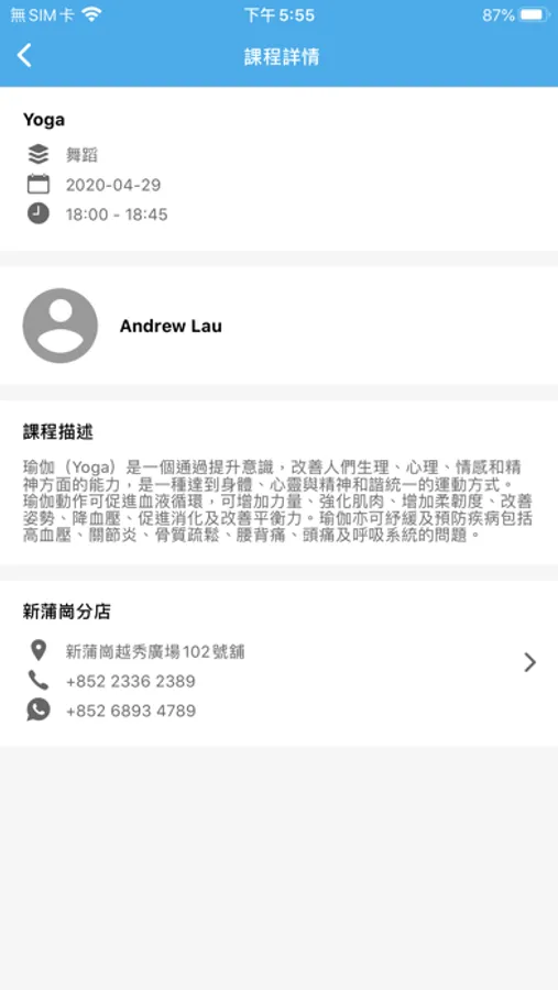 方便: 會員無需透過Whatsapp 或致電分店進行預約,可以更快捷方便使用APP去預 約課堂及瀏覽課堂詳情。