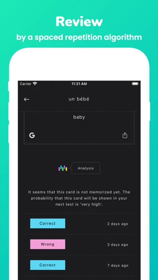 -And this scientific algorithm reminds you at the proper time to review words so that you will never forget.