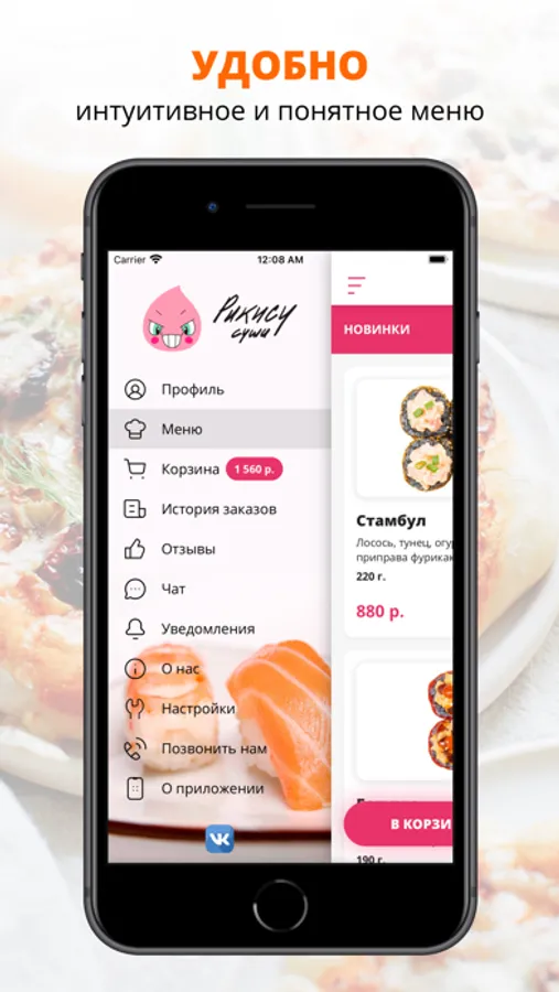 С помощью мобильного приложения «Рикису» вы можете заказать суши, роллы и другую готовую еду с доставкой на дом - всего в несколько кликов!