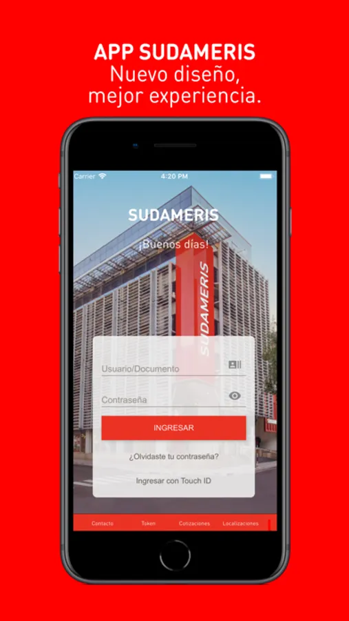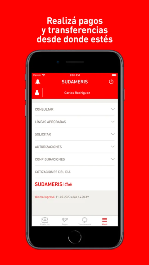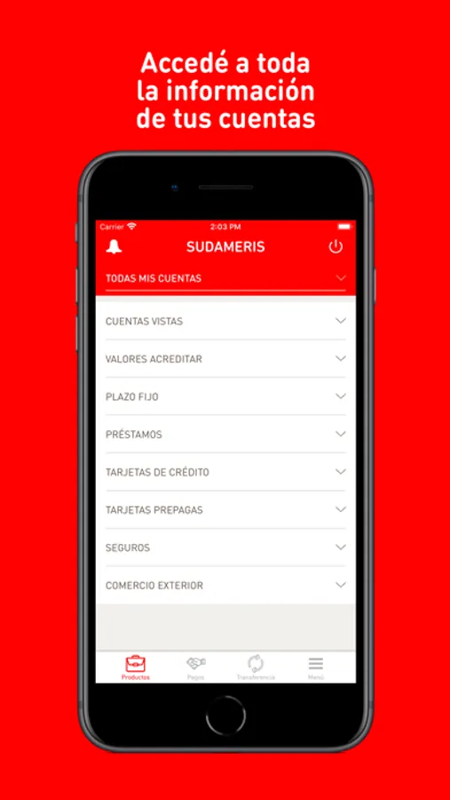 La nueva App de Sudameris te permite operar todos los días del año, estés donde estés. Podés consultar el estado y los movimientos de tus cuentas, realizar transferencias, pagar servicios públicos y privados, solicitar préstamos y chequeras, recibir notificaciones, ingresar a Sudameris Club, acceder a la localización de sucursales y mucho más.
