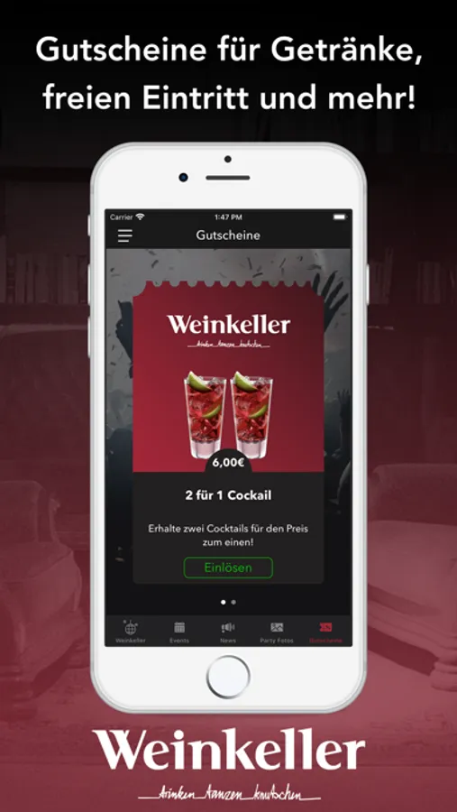 + Bezahle am Ende des Abends bequem mit Weinkeller Pay