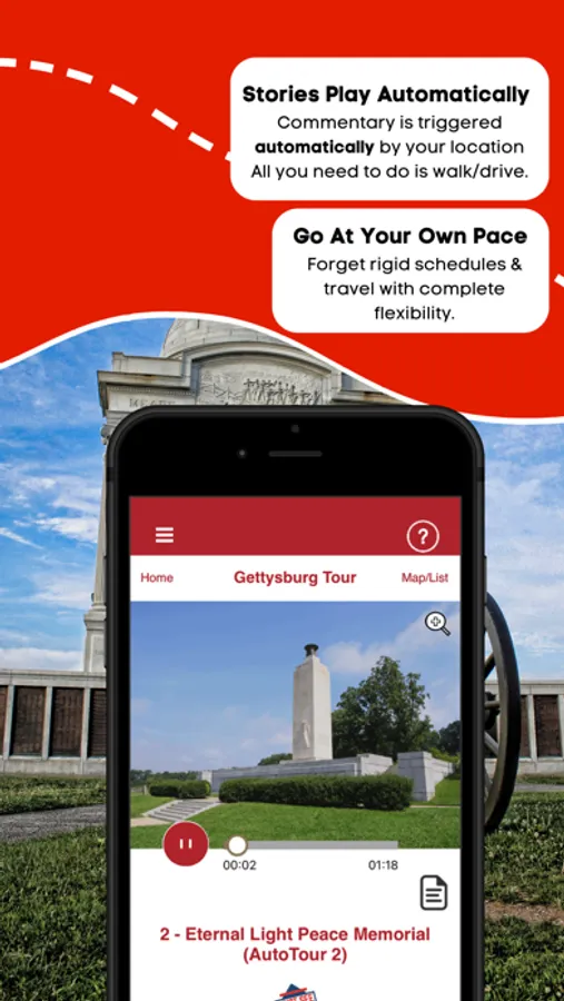 Explore the battlefield from the comfort of your own car or rental while you listen to a detailed, blow-by-blow account of the battle. Dive deep into broad history and personal stories alike, stop wherever and whenever you want, and truly immerse yourself in this turning point in American history.