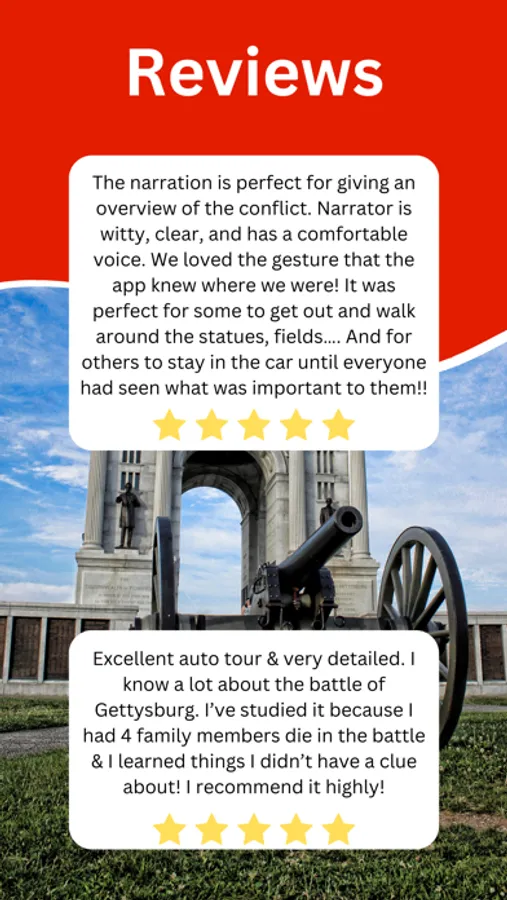Experience the drama, the heroism, the triumphs and defeats of a conflict during which the very fate of the nation hung in the balance with this self-guided audio tour of the Battle of Gettysburg!