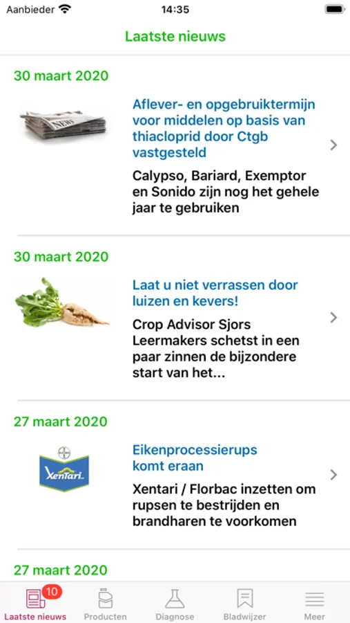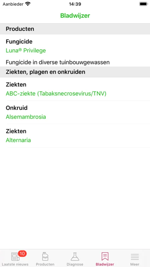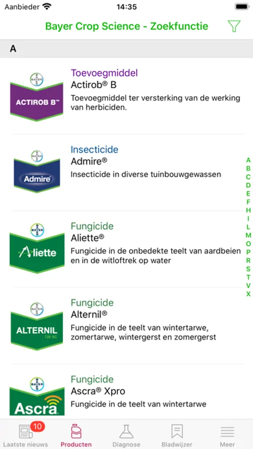 De Bayer Agro app geeft informatie over producten en ziekten en plagen (incl. productaanbevelingen). Daarnaast geeft de app een overzicht van de laatste 10 nieuwsberichten die op de website worden gepubliceerd.