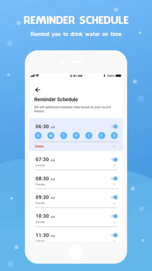 You can schedule to receive drink water reminder or select the time like the default application is available.
