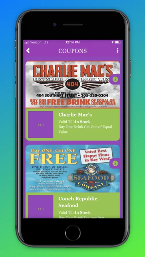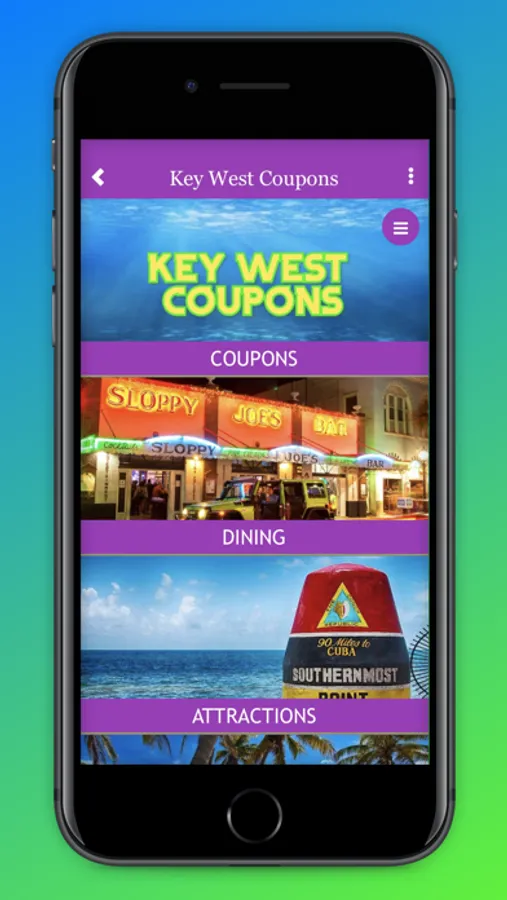 Key West Coupons App is loaded with great deals for you and your family when visiting Key West Florida. Find Listings for Dining, Shopping, Attractions, Museums, Water Sports, Fishing, etc. Find your deal and show it to the Company and enjoy your deal. Get directions, menus, magazines, news, and listen to local radio. Check out the events section and get up to date what is going on in the Keys. Find a local bar for happy hour and enjoy a nice refreshing drink. Receive push notifications for great deals daily.