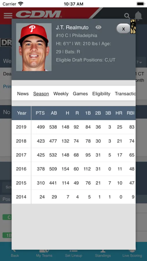 Using our state-of-the-art draft room, you can draft your teams easily and quickly without leaving your home. The in-season management tools also let you set your starting lineup, pick up the top free agents and see Live Scoring and Live Standings. You can even follow your live Draft Board on AirPlay so that you can see who everyone else is picking while you research your next pick. Signup for push notifications when your draft starts, when you are on deck or on the clock. Everything you need on Draft Day and after Draft Day to create a winning team is available here.