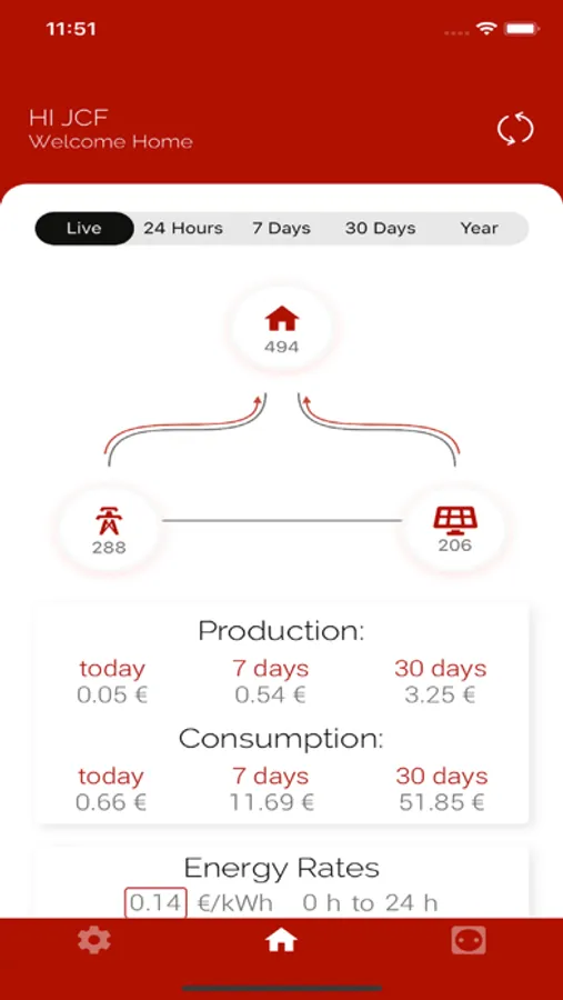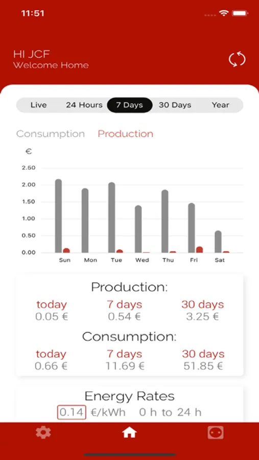 Our app allows you to manage your devices' energy consumption at home, while also showing you how much energy you may be producing if you have solar panels installed.