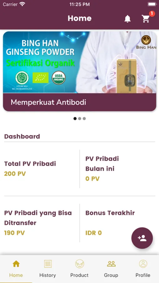 • Cek PV pribadi dan PV Grup