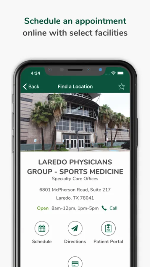 The Doctors Hospital of Laredo app gives you the location and directions to the nearest Doctors Hospital of Laredo facilities based on the type of care you need. It also allows you to schedule an appointment, view your health records, pay bills, and find nearby amenities like restaurants, gift shops and florists.
